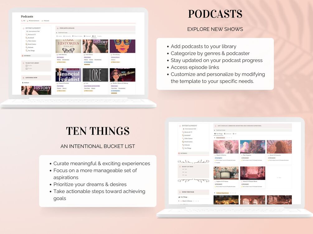 With our Podcast tracker, curate favorite podcasts, track your listening journey, and discover new shows. Whether you're a dedicated podcast enthusiast or a curious beginner, this Notion template is your audio entertainment companion.